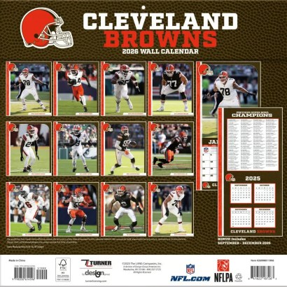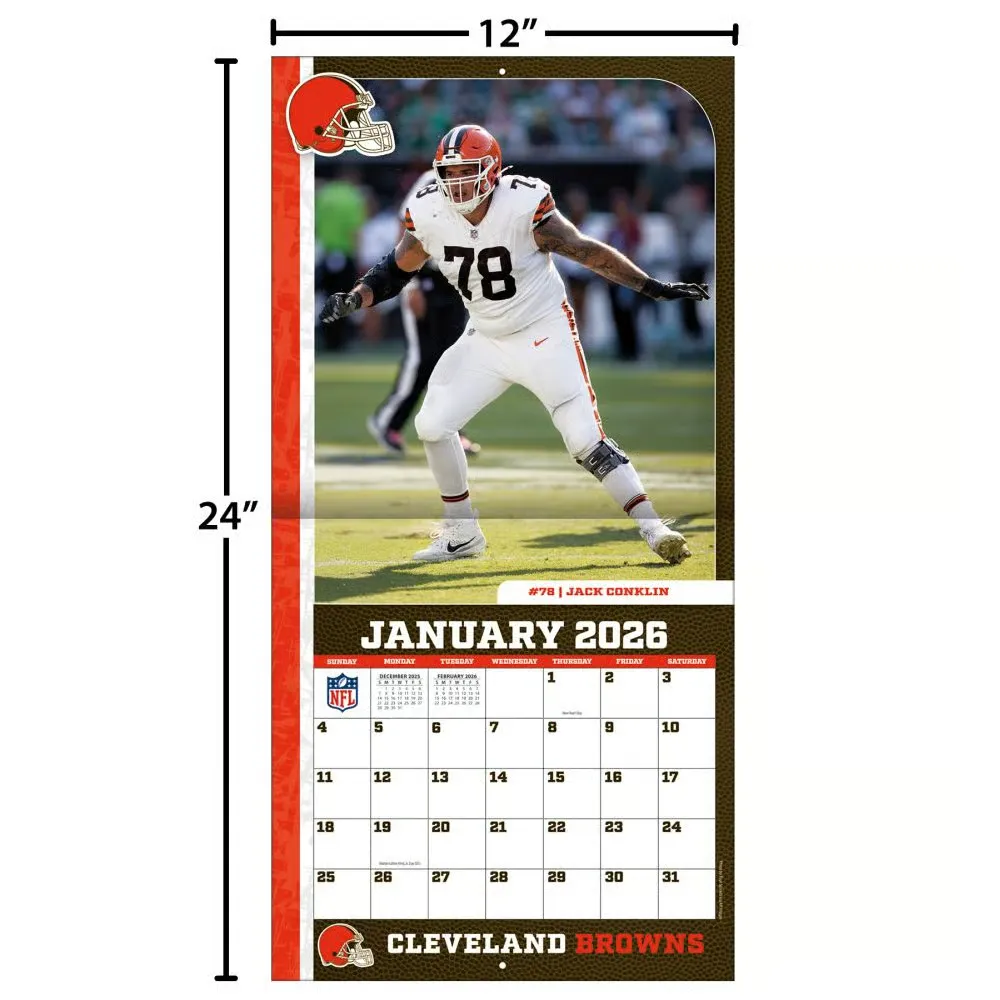Made for passionate football fans, this team wall calendar includes poster-sized action shots of your favorite players from the Cleveland Browns every month! Each month also includes professional athlete bios and new graphics featuring the Browns team colors and logos. Made with exceptional quality, the 12×12 calendar also includes bonus pages that feature Sept. – Dec. 2025 and the past Super Bowl results! 12-month format (January – December 2026). Dimensions: 12″w x 24″h (opened).